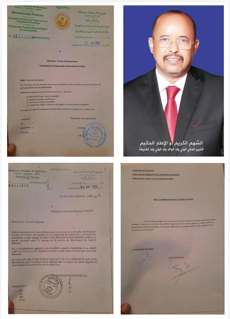 أما جهود الرجل الخبير المالي الولي ولد الوالد ولد الخليفة السياسية، فهي كثيرة ومعروفة مسجل أغلبها صوتا وصورة على سبيل المثال، فالخبير المالي دعم جميع توجهاتكم سيدي الرئيس، على سبيل المثال في الانتخابات الرئاسية للمأمورية الثانية لكم سيدي الرئيس،بذل الخبير المالي الولي ولد الخليفة الغالي والنفيس من مال وجهد ووقت لحصولكم سيدي الرئيس على أكبر كم ممكن من الأصوات، وهو ماتحقق في حصول اترارزة على أكبر نسبة تصويت على عموم التراب الوطني، وحصول المناطق المحسوبة على الخبير المالي الولي ولد الخليفة على أكبر نسبة تصويت لسيادتكم سيدي الرئيس، وهذه المناطق المحسوبة على الخبير المالي كثيرة جدا جدا جدا وذلك عائد إلى عدة عوامل، أولها أن الغالبية العظمى من الولاية إما أهل أو أخوال أو تلاميذ للخبير المالي الولي ولد الخليفة، فهو ينتمي لأسرتين كبيرتين تعدى أتباعهم حدود الدولة،وهما أسرة الشرف والكرم والعلم والحلم أسرة أهل الخليفة او أخواله الذين هم أصحاب الخلافة العامة للطريقة القادرية بغرب إفريقيا أهل الشيخ سعد أبيه.