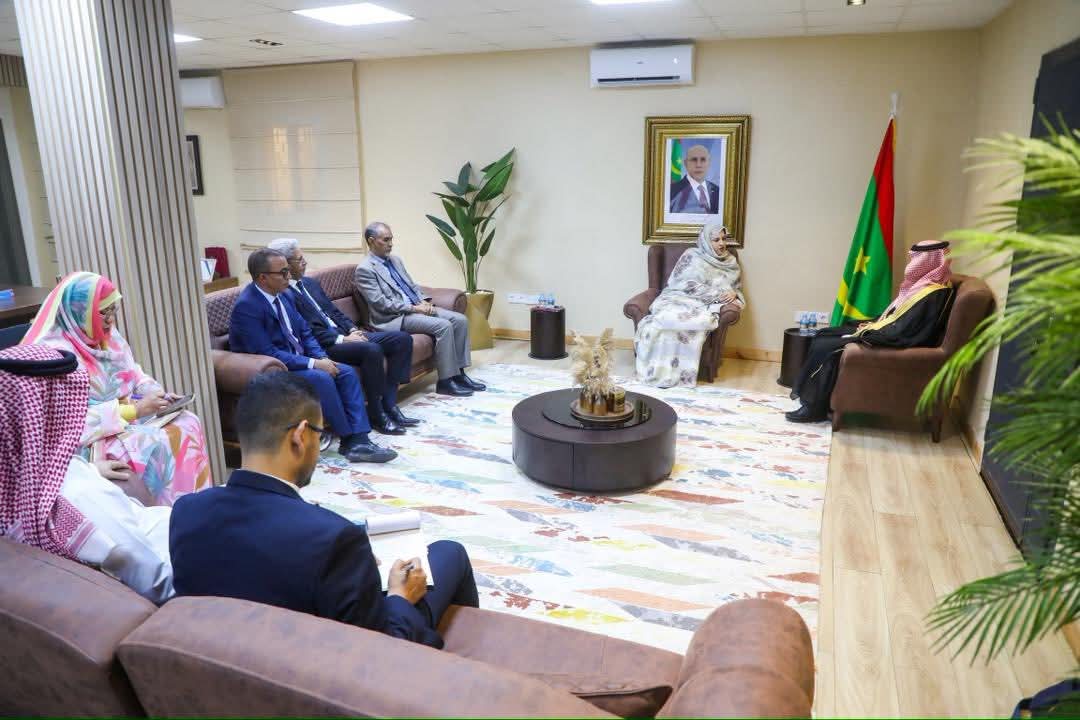 استقبلت معالي وزيرة العمل الاجتماعي والطفولة والأسرة السيدة صفية انتهاه، صباح اليوم الثلاثاء بمكتبها في نواكشوط، وفدًا من الهيئة العربية للهلال الأحمر والصليب الأحمر برئاسة الأمين العام للهيئة الدكتور عبد الله سهيل المهيدلي.