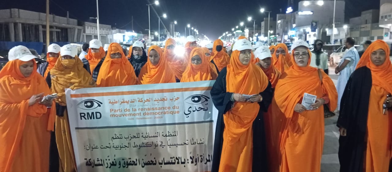 نظّمت المنظمة النسائية لـ حزب تجديد الحركة الديمقراطية (تحدي)، ليلة البارحة، حملةً ميدانيةً للتحسيس بأهداف الحزب وبرنامجه، وذلك في ولاية نواكشوط الجنوبية.