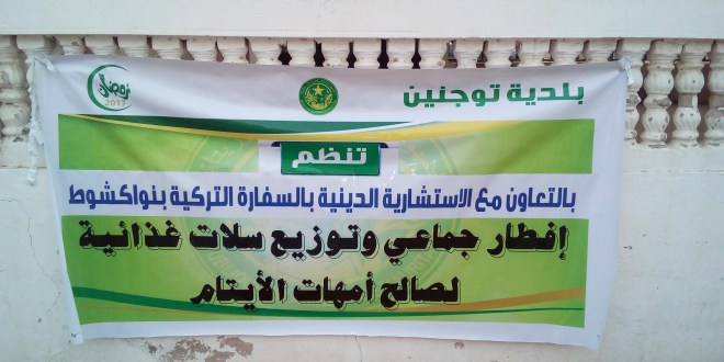 وتأتي هذه العملية في اطار الشراكة البناءة التي تربط البلدية بالإستشارية الدينية في السفارة التركية بنواكشوط ،التي مافتئت تواكب بلدية توجنين خاصة في برنامجها الرمضاني كل عام..